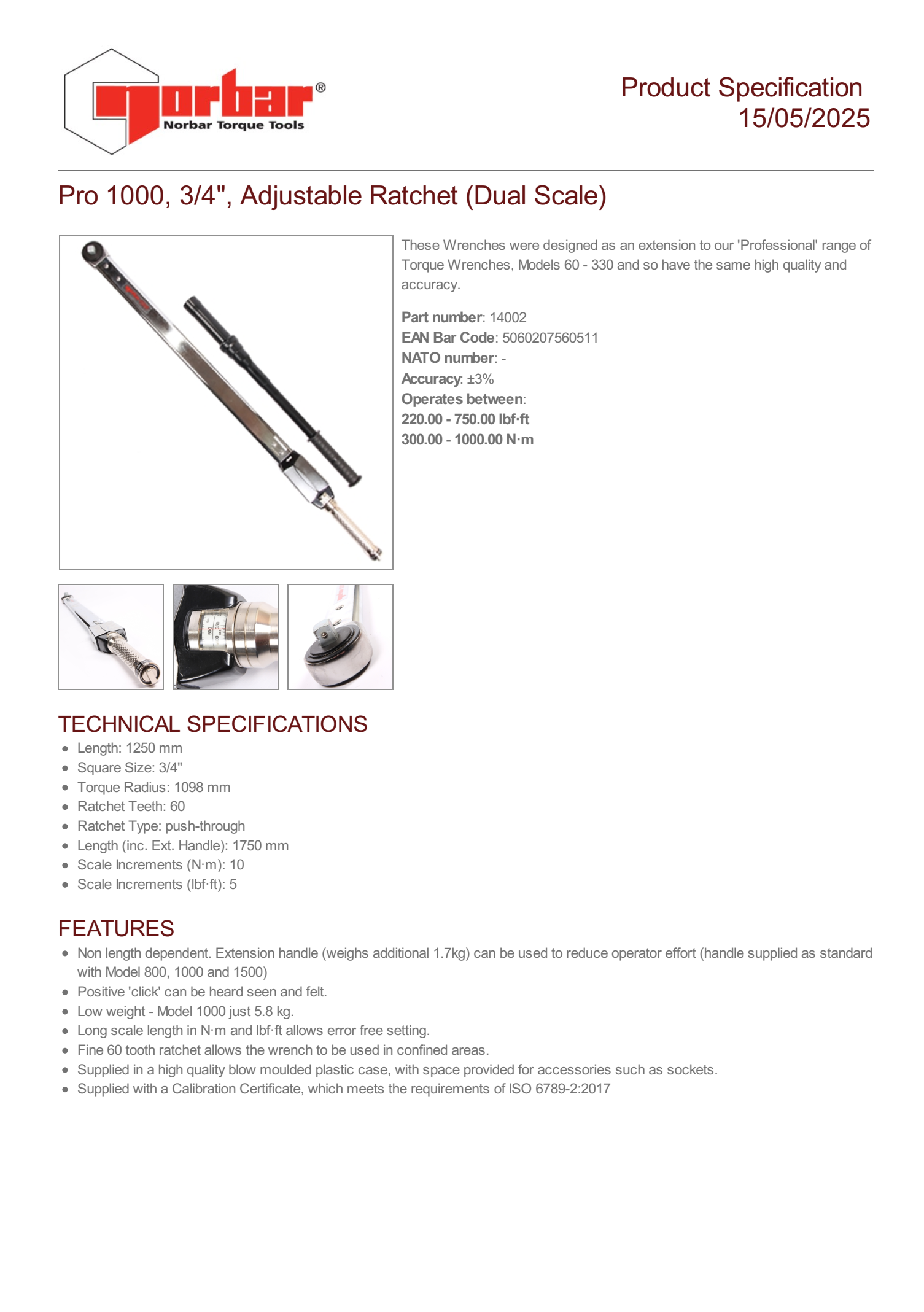 Norbar Pro 1000, 3/4 inch Drive Torque wrench