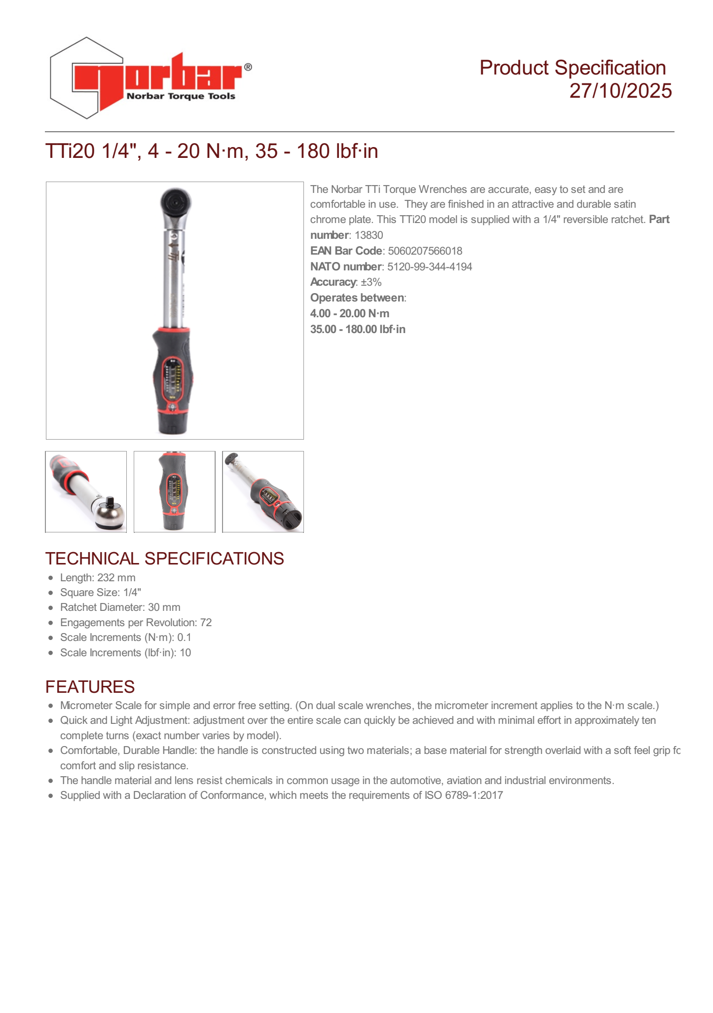 Norbar 4-20N.m Torque wrench TTi20 1/4 Drive